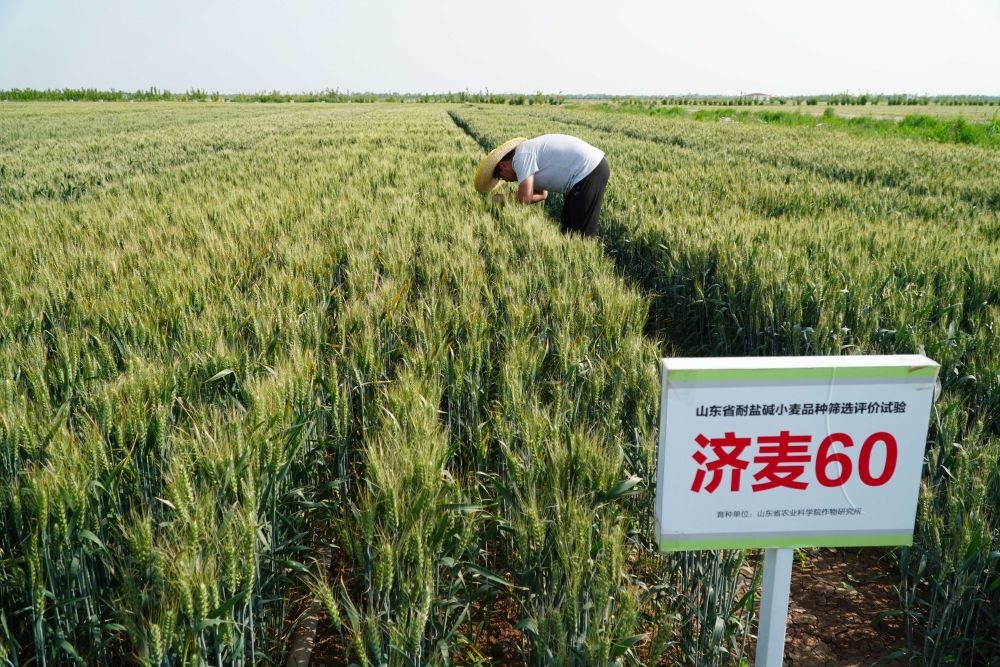 “這是山東省農(nóng)業(yè)科學(xué)院作物所小麥遺傳育種團隊專門針對旱地、鹽堿地培育的新品種?!鄙綎|省農(nóng)業(yè)科學(xué)院作物所研究員曹新有說,2022年夏收時測產(chǎn),在土壤含鹽量3.75‰的土地上,“濟麥60”平均畝產(chǎn)460.98公斤,創(chuàng)鹽堿地小麥高產(chǎn)紀錄。