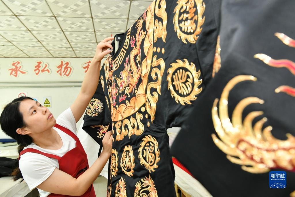 河北省肅寧縣邵莊鄉(xiāng)東高家口村的戲曲服裝服飾制作技藝至今已傳承百余年,2017年被列入滄州市市級非物質(zhì)文化遺產(chǎn)名錄。近年來,當(dāng)?shù)卦谕七M(jìn)產(chǎn)業(yè)富民的過程中,積極推進(jìn)傳統(tǒng)技藝與現(xiàn)代工業(yè)生產(chǎn)有機(jī)融合,成立、引進(jìn)服裝加工企業(yè),為100多名當(dāng)?shù)亓羰貗D女提供就業(yè)崗位,在促進(jìn)居民增收的同時,推動了傳統(tǒng)非遺的傳承。新華社記者 牟宇 攝