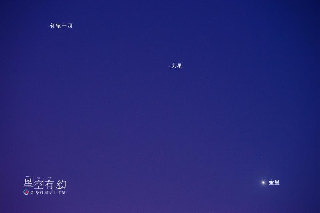 本次相合,火星與軒轅十四最近時僅有0.7度,就比一個滿月視直徑(約為0.5度)大一點,不過受日光影響,無法看到它們相距最近時的情景。好在當(dāng)天20時左右,兩星近距離爭輝的場景在漸黑的暮色中依然會呈現(xiàn),感興趣的公眾可以嘗試觀測。