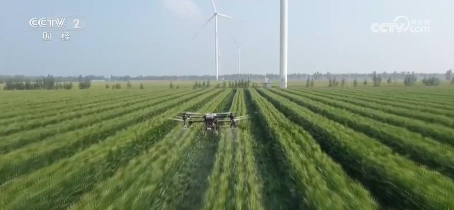 在山東省德州市武城縣,2萬畝復合種植的玉米和大豆長勢旺盛。李希軍2023年種植的1600多畝地,采用了玉米4行、大豆4行,兩種作物帶狀間作模式。他告訴記者,這段時間當?shù)亟涤觐l繁,部分地塊出現(xiàn)褐斑病、玉米螟蟲等病蟲害。李希軍第一時間請來農技人員和飛防隊進行針對性防控作業(yè)。