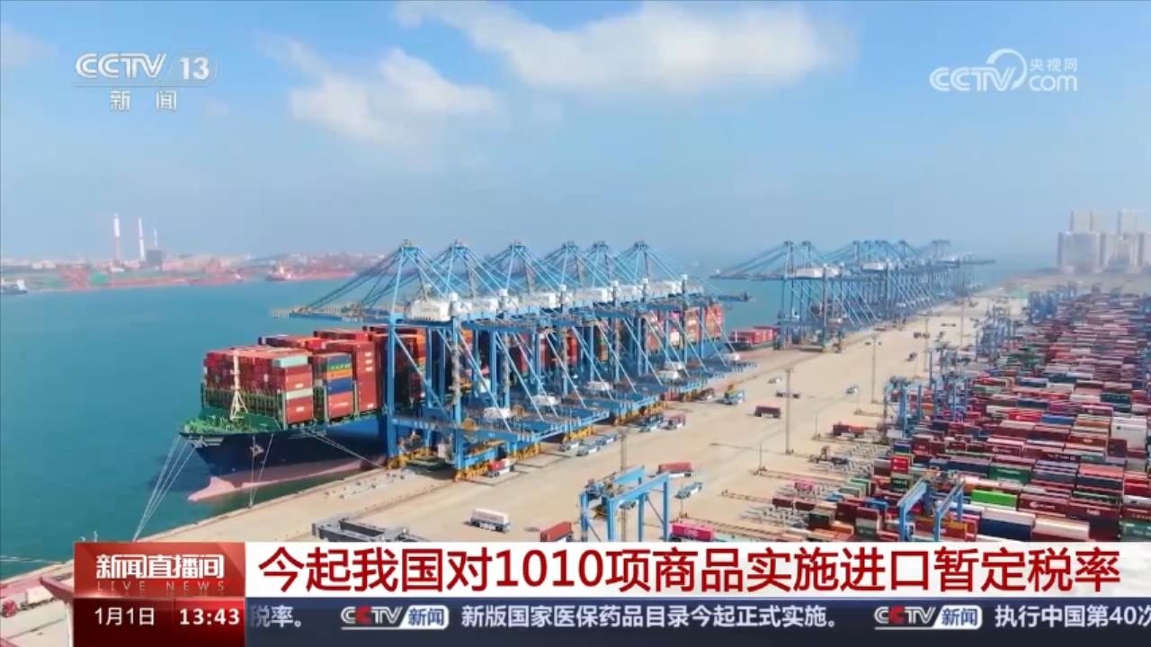 央視網(wǎng)消息:為增強(qiáng)國內(nèi)國際兩個(gè)市場、兩種資源聯(lián)動效應(yīng),維護(hù)我國產(chǎn)業(yè)鏈、供應(yīng)鏈穩(wěn)定順暢,1月1日起,我國對1010項(xiàng)商品實(shí)施低于最惠國稅率的進(jìn)口暫定稅率。
