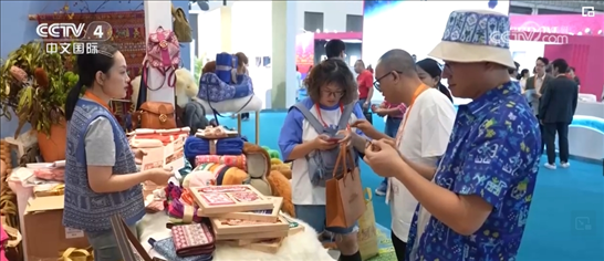 首次參展國家?guī)淼莫毺卣蛊穫涫芮嗖A。在馬來西亞展臺,拖鞋、餅干、燕窩吸引了不少消費者駐足。而在蒙古國國家館,羊絨制品備受關注。