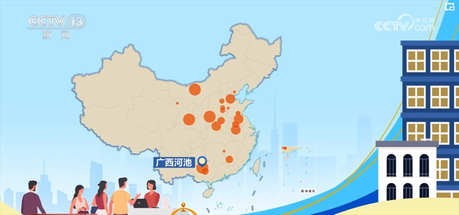 大家都去哪兒了?通過分析平臺上335個目的地的同比增幅數據后,找到了2024年“五一”最受歡迎的小眾旅游目的地。在這張熱力圖上,標注的是增幅前20的小眾目的地城市,圓圈大小表示增幅的高低,排名第一的廣西河池的酒店和票務預訂同比增長近四倍,而分布在10個不同省份的這20個城市,同比增幅都在一倍以上。