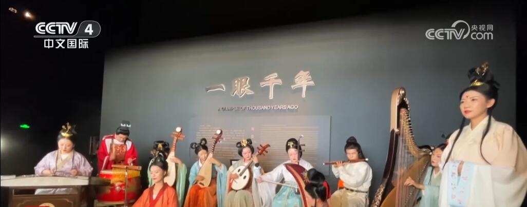 在山西太原北齊壁畫博物館,一場(chǎng)“文物”和“音樂”、“傳承”和“創(chuàng)新”的音樂會(huì)正在上演。樂師用古琴、琵琶、箜篌、笛子等民族樂器演繹出了《一眼千年·夢(mèng)回北齊》,將北齊時(shí)期武安王徐顯秀墓室中的《夫婦宴飲圖》壁畫中的樂隊(duì)場(chǎng)景完美呈現(xiàn)。而在互動(dòng)體驗(yàn)區(qū),觀眾撥動(dòng)電子屏上的琴弦,就可以和投影墻上的樂伎共彈一曲。