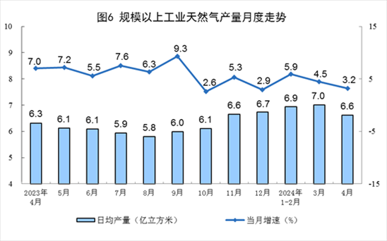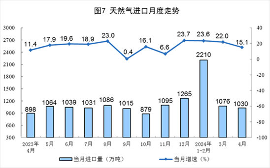 1—4月份,規(guī)上工業(yè)天然氣產(chǎn)量830億立方米,同比增長(zhǎng)5.0%。進(jìn)口天然氣4300萬(wàn)噸,同比增長(zhǎng)20.7%。