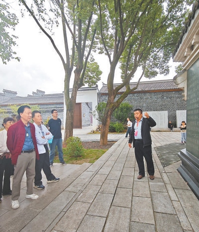 安徽桐城文昌街道六尺巷社區(qū)黨總支書記張?jiān)艦橛慰椭v述六尺巷的故事。本報(bào)記者 李俊杰攝