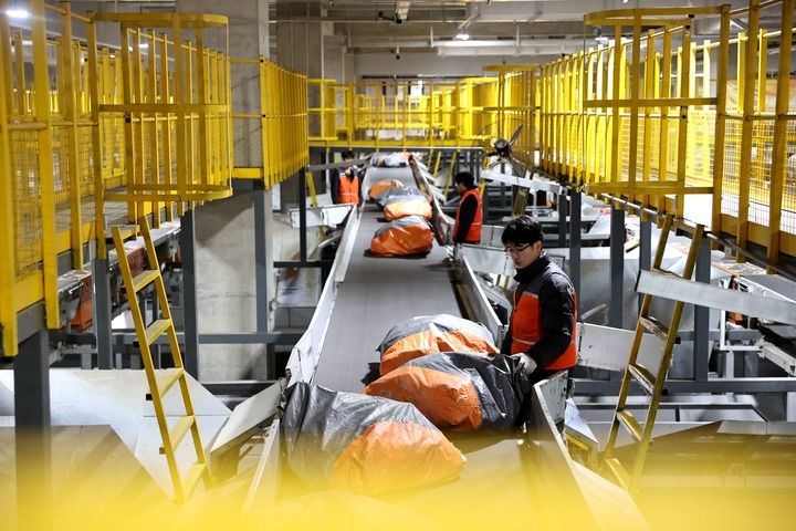 工人在河北省固安縣的申通快遞華北轉(zhuǎn)運(yùn)中心內(nèi)工作(2025年2月26日攝)。新華社記者 王曉 攝