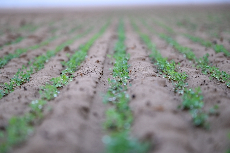這是在新疆和田地區(qū)策勒縣4萬畝苜蓿種植基地拍攝的苜蓿苗(9月9日攝)。
