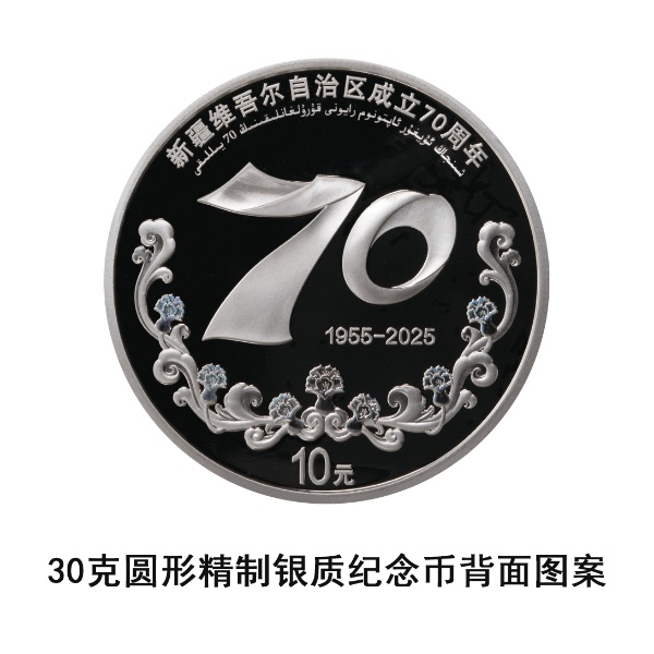 中國人民銀行定于2025年9月19日發(fā)行新疆維吾爾自治區(qū)成立70周年金銀紀念幣一套。該套金銀紀念幣共2枚,其中金質紀念幣1枚,銀質紀念幣1枚,均為中華人民共和國法定貨幣。