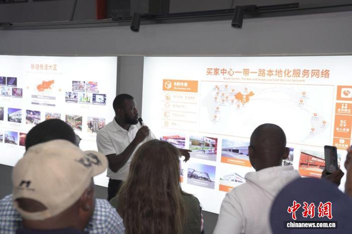 非洲籍工作人員白小龍為代表團(tuán)講解。 金華市貿(mào)促會 供圖