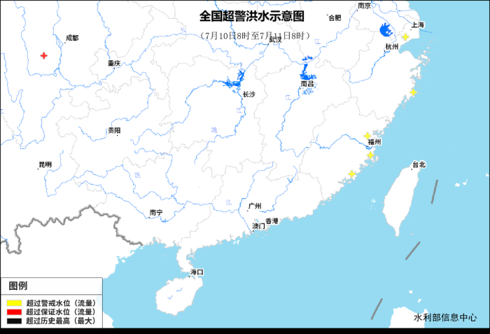 目前,上述河流均已退至警戒水位以下,水利部維持針對浙江、福建、重慶、四川、廣東等地的洪水防御Ⅳ級應急響應。