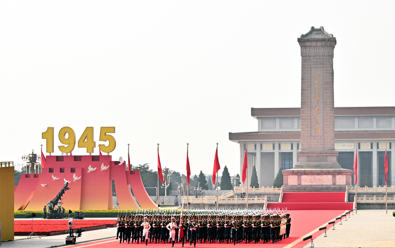 9月3日,紀(jì)念中國人民抗日戰(zhàn)爭暨世界反法西斯戰(zhàn)爭勝利80周年大會在北京隆重舉行。這是標(biāo)兵。