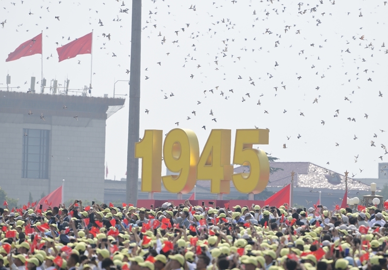 9月3日,紀(jì)念中國人民抗日戰(zhàn)爭暨世界反法西斯戰(zhàn)爭勝利80周年大會在北京隆重舉行。這是紀(jì)念大會現(xiàn)場放飛和平鴿。
