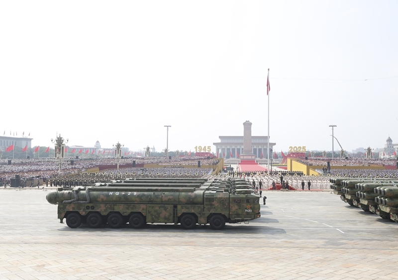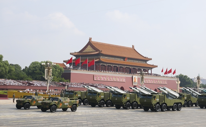 9月3日,紀(jì)念中國人民抗日戰(zhàn)爭暨世界反法西斯戰(zhàn)爭勝利80周年大會在北京隆重舉行。這是核導(dǎo)彈第二方隊(duì)接受檢閱。
