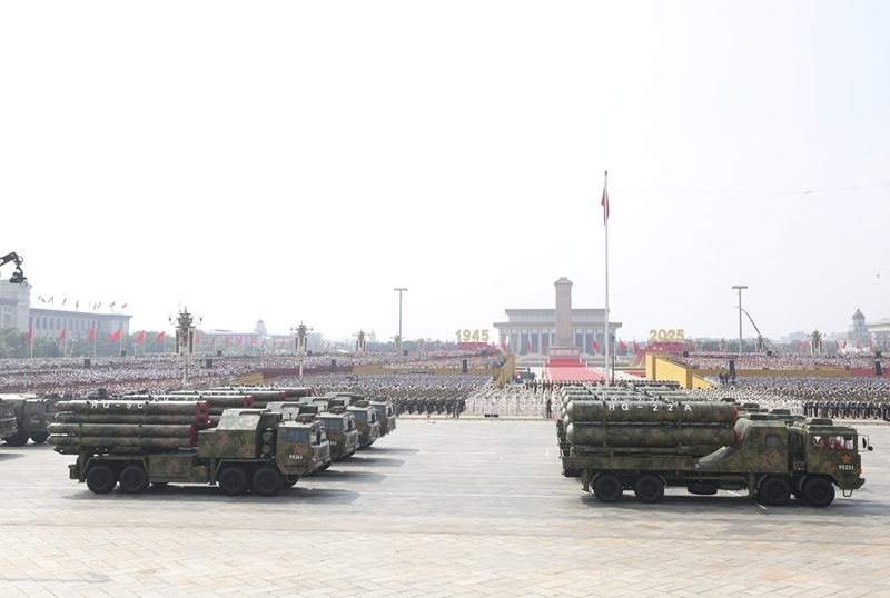 9月3日,紀(jì)念中國人民抗日戰(zhàn)爭暨世界反法西斯戰(zhàn)爭勝利80周年大會在北京隆重舉行。這是反艦導(dǎo)彈方隊(duì)接受檢閱。