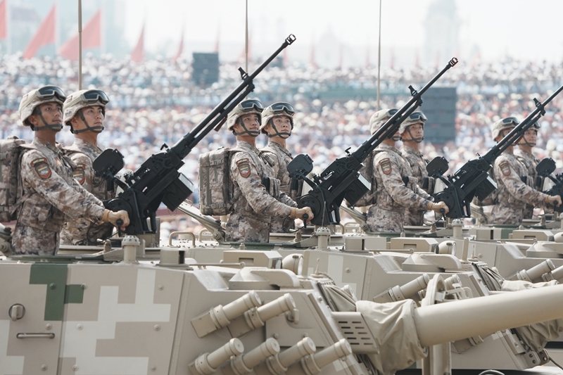 9月3日,紀(jì)念中國人民抗日戰(zhàn)爭暨世界反法西斯戰(zhàn)爭勝利80周年大會在北京隆重舉行。這是兩棲突擊方隊(duì)接受檢閱。
