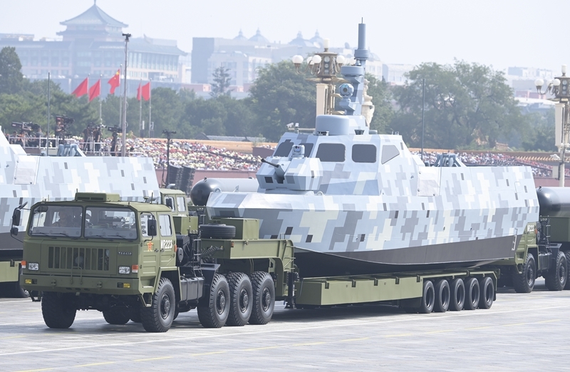 9月3日,紀(jì)念中國人民抗日戰(zhàn)爭暨世界反法西斯戰(zhàn)爭勝利80周年大會在北京隆重舉行。這是海上無人作戰(zhàn)方隊(duì)通過天安門廣場。
