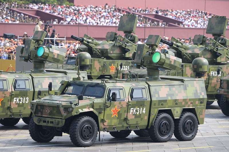 9月3日,紀(jì)念中國人民抗日戰(zhàn)爭暨世界反法西斯戰(zhàn)爭勝利80周年大會在北京隆重舉行。這是對空抗擊方隊(duì)接受檢閱。