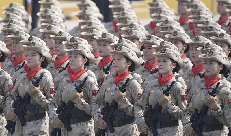 9月3日,紀(jì)念中國人民抗日戰(zhàn)爭暨世界反法西斯戰(zhàn)爭勝利80周年大會在北京隆重舉行。這是網(wǎng)絡(luò)空間作戰(zhàn)方隊(duì)接受檢閱。