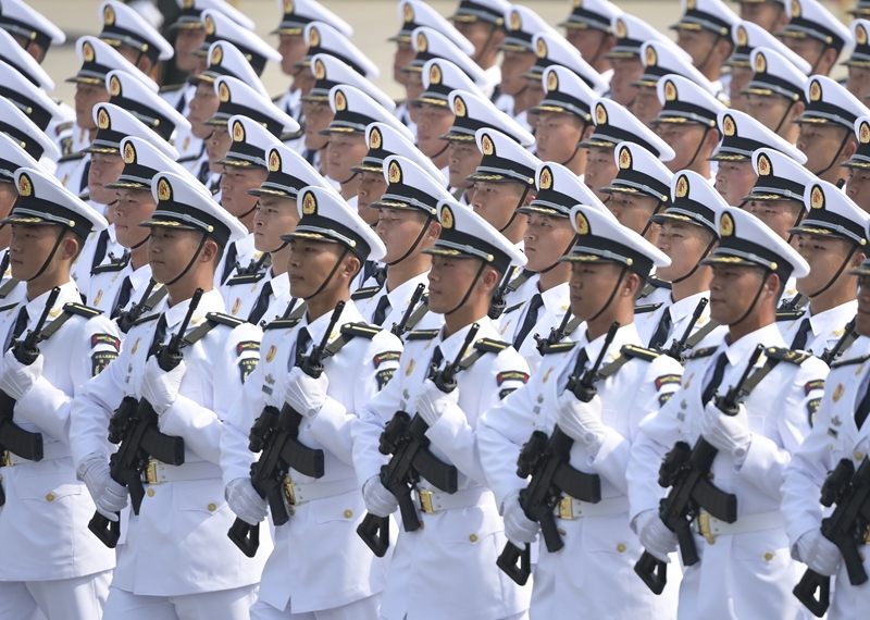 9月3日,紀(jì)念中國人民抗日戰(zhàn)爭暨世界反法西斯戰(zhàn)爭勝利80周年大會在北京隆重舉行。這是海軍方隊(duì)通過天安門廣場。