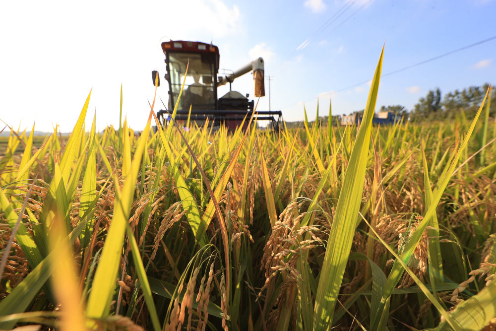 10月16日,在江蘇省連云港市贛榆區(qū)城頭鎮(zhèn)中青墩村,種植戶駕駛收割機搶收水稻。新華社發(fā)(司偉 攝)