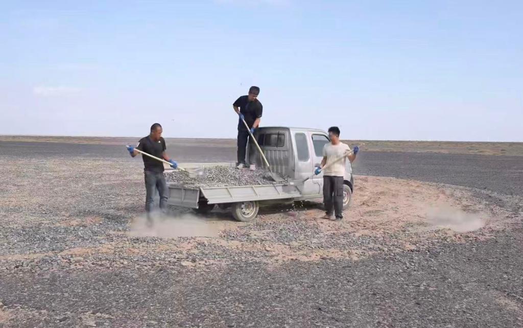 “看到車(chē)輪碾過(guò)標(biāo)語(yǔ)那一刻,就像碾在歷史的脊梁上。”網(wǎng)絡(luò)博主陸遙得知標(biāo)語(yǔ)被破壞后,主動(dòng)驅(qū)車(chē)兩千多公里,經(jīng)歷六天抵達(dá)哈密。他和朋友們拉運(yùn)20噸砂石,才終于修復(fù)這些“疤痕”。