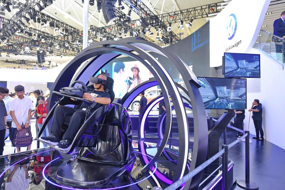 2017年7月15日,市民在第十四屆中國(長春)國際汽車博覽會一汽-大眾展臺體驗VR試駕。