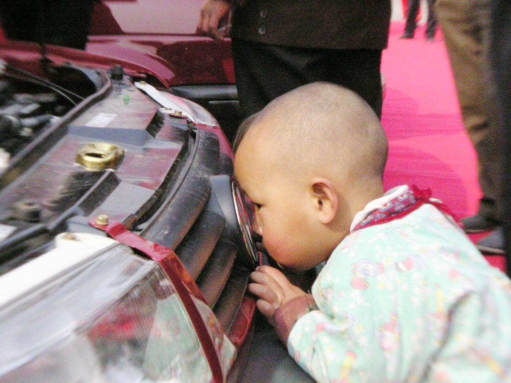 2004年3月27日,一汽-大眾新捷達上市儀式在石家莊市文化廣場舉行,一位小朋友對參展的汽車產(chǎn)生了濃厚的興趣。
