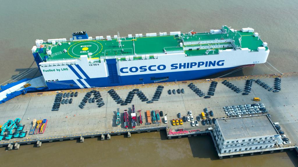 如今,整車出口的貨輪鳴笛起航