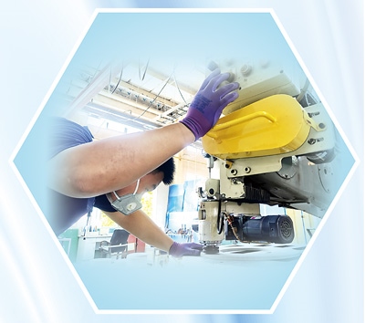 萬(wàn)基萬(wàn)公司砂輪生產(chǎn)部工作人員正在檢測(cè)砂輪硬度。金成勛攝