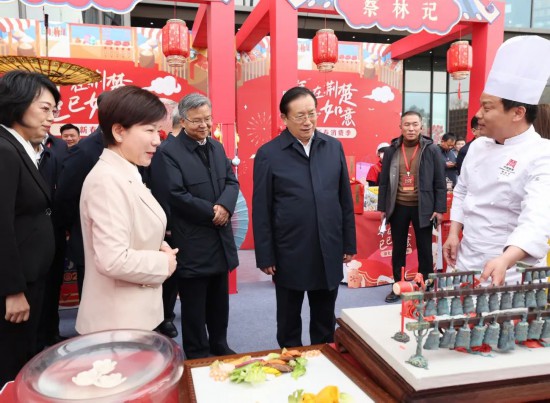 啟動儀式后,王忠林、李殿勛、盛秋平、范昀等領(lǐng)導(dǎo)和嘉賓來到武商夢時代新春消費市集、國潮好物市集,察看手機、平板、智能穿戴數(shù)碼產(chǎn)品展示,參觀非遺孝感雕花剪紙、恩施西蘭卡普,老字號德華樓、揚子江、百布堂、洪山菜薹以及楚菜、楚茶、楚酒等展區(qū),與商戶交流,了解消費補貼政策實施、產(chǎn)品銷售情況,并祝愿商戶們新春快樂、生意興隆。