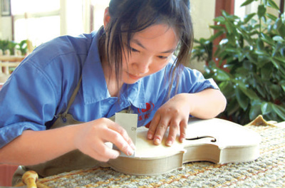 為提升品質(zhì),公司從阿爾卑斯山等地進(jìn)口云杉、楓木等高檔木料,以國(guó)際化標(biāo)準(zhǔn)改良產(chǎn)品,提高制作水平和裝配工藝,從普及提琴生產(chǎn)向中高端轉(zhuǎn)型。公司從高校聘請(qǐng)制琴專業(yè)人才,成立專門的工作室,接收定制提琴的高端訂單,一把普通的定制琴價(jià)格已達(dá)3萬元左右,自主品牌“華蘊(yùn)”的名聲也越來越響。