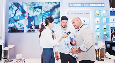 在科大訊飛位于服務(wù)機(jī)器人專(zhuān)區(qū)的展位,一名土耳其園藝設(shè)備商熟練地挑選著翻譯機(jī),“這已經(jīng)是我購(gòu)買(mǎi)的第十五臺(tái)訊飛翻譯機(jī)了,現(xiàn)在我交到的中國(guó)朋友越來(lái)越多。”