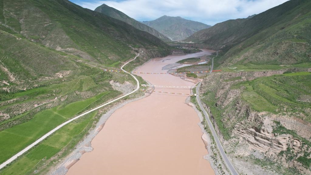 7月22日拍攝的通天河直門達(dá)河段(無人機(jī)照片)。新華社記者劉詩平攝