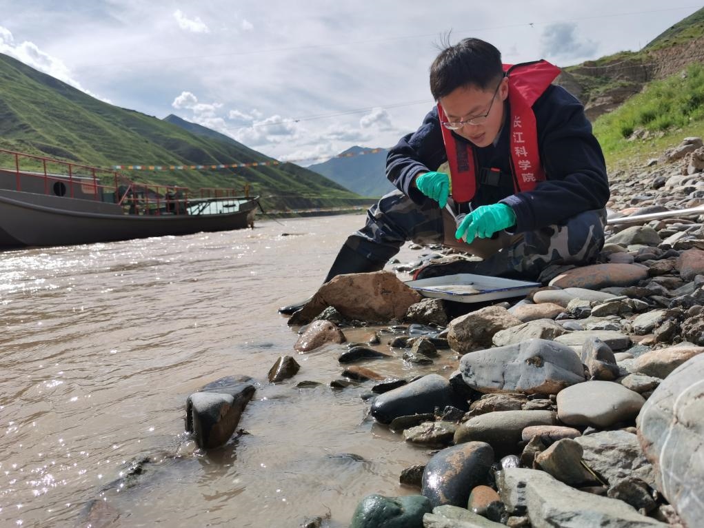 科考啟動當(dāng)天,長江科學(xué)院河流所、水環(huán)境所等科研單位的科考隊(duì)員在直門達(dá)河段進(jìn)行了懸移質(zhì)泥沙和河床沉積物、浮游生物等樣品的取樣。