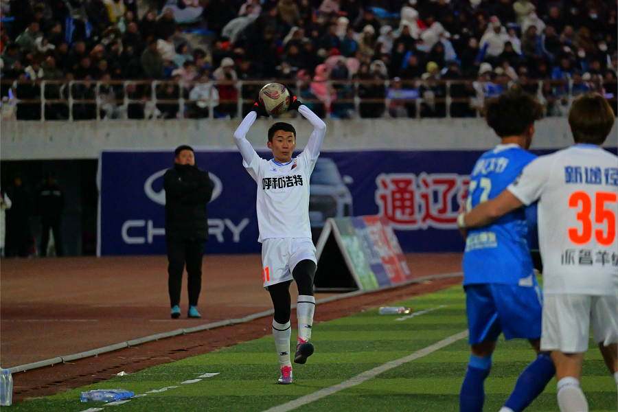 比賽伊始,兩隊直接開啟高速對抗模式,攻防節(jié)奏緊湊,轉(zhuǎn)換效率拉滿,為現(xiàn)場4萬余觀眾呈現(xiàn)了開局即高潮的對決。雙方輪番發(fā)起高強(qiáng)度攻勢,給對方球門制造實質(zhì)性威脅,呼和浩特隊小組賽表現(xiàn)亮眼的16號孟克特爾文聚集中路攻堅,31號外援馬庫斯則鎮(zhèn)守左路策應(yīng),左路突破加中路沖擊向通遼隊禁區(qū)施壓,然而未能將攻勢轉(zhuǎn)化為進(jìn)球,兩隊以0:0的比分進(jìn)入中場休息。