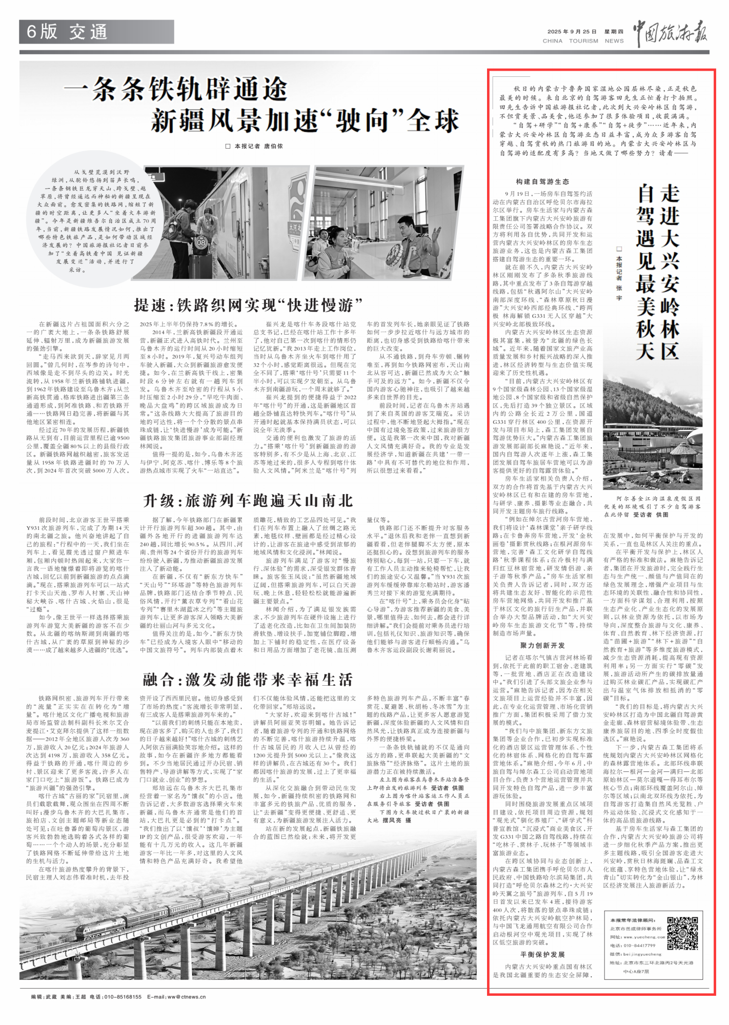 2025年9月25日,《中國旅游報》第6版刊發(fā)題為《走進大興安嶺林區(qū) 自駕遇見最美秋天》的文章,報道了“自駕+研學”“自駕+康養(yǎng)”“自駕+徒步”……內(nèi)蒙古大興安嶺林區(qū)自駕游業(yè)態(tài)日益豐富,成為眾多游客自駕穿越、自駕賞秋的熱門旅游目的地。