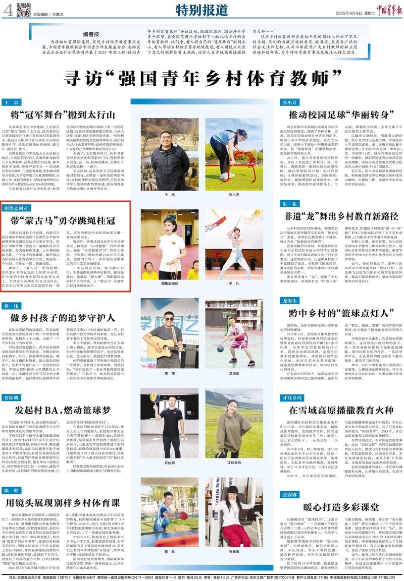2025年9月9日,《中國青年報》第4版刊發(fā)題為《朝魯孟圖亞帶“蒙古馬”勇奪跳繩桂冠》的文章,報道了內(nèi)蒙古自治區(qū)鄂爾多斯市康巴什區(qū)第四小學(xué)體育教師朝魯孟圖亞深耕鄉(xiāng)村教育,用細(xì)繩甩出鄉(xiāng)村少年的昂揚,讓“蒙古馬”在教育田野持續(xù)綻放光芒。