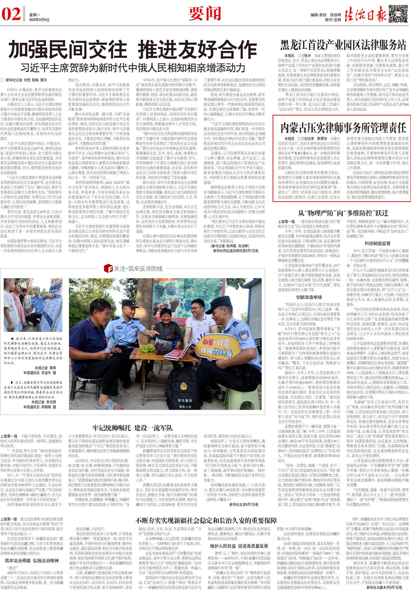 2025年9月8日,《法治日報》第2版整版刊發(fā)題為《內(nèi)蒙古壓實(shí)律師事務(wù)所管理責(zé)任》的文章,報道了內(nèi)蒙古自治區(qū)司法廳、自治區(qū)律師協(xié)會近日共同印發(fā)《關(guān)于進(jìn)一步壓實(shí)律師事務(wù)所管理責(zé)任的通知》,進(jìn)一步規(guī)范律師事務(wù)所管理,壓實(shí)律師事務(wù)所及其管理人員主體責(zé)任,強(qiáng)化律師隊伍建設(shè),促進(jìn)律師行業(yè)高質(zhì)量發(fā)展。