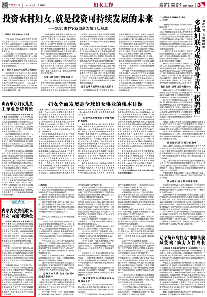 2025年10月22日,《中國婦女報》第3版刊發(fā)題為《內(nèi)蒙古發(fā)放低收入婦女“兩癌”救助金》的文章,報道了近日,內(nèi)蒙古自治區(qū)婦聯(lián)在呼和浩特市回民區(qū)三順店社區(qū)啟動全區(qū)低收入婦女“兩癌”救助金發(fā)放暨關(guān)愛婦女健康保險捐贈活動,全區(qū)12個盟市、2個計劃單列市在相關(guān)旗縣同步推進。
