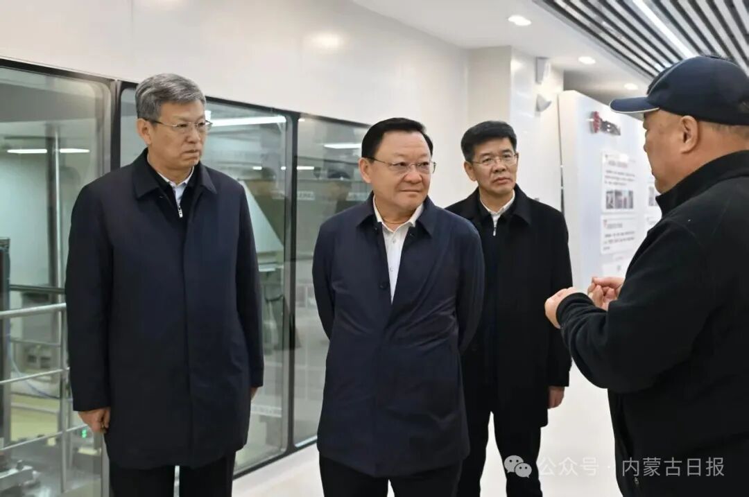 11月2日,自治區(qū)黨委書記王偉中來(lái)到蒙東(通遼)高端重型基礎(chǔ)裝備制造產(chǎn)業(yè)基地,聽(tīng)取龍馬集團(tuán)產(chǎn)業(yè)規(guī)劃、產(chǎn)品研制等情況介紹。草原云·內(nèi)蒙古新聞網(wǎng)記者 馬建兵 攝