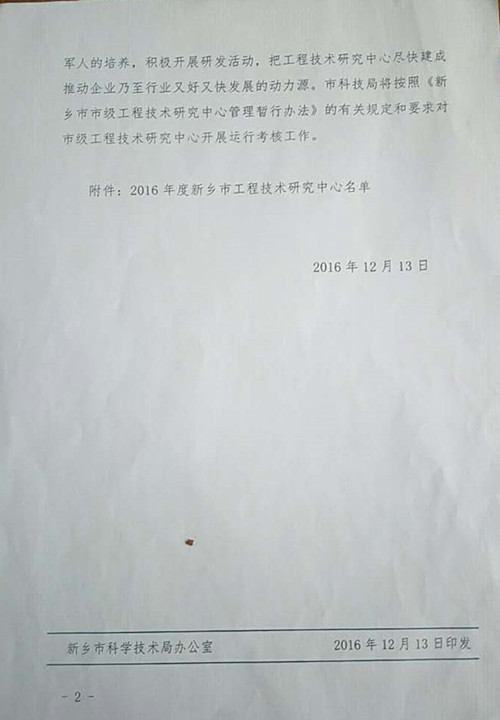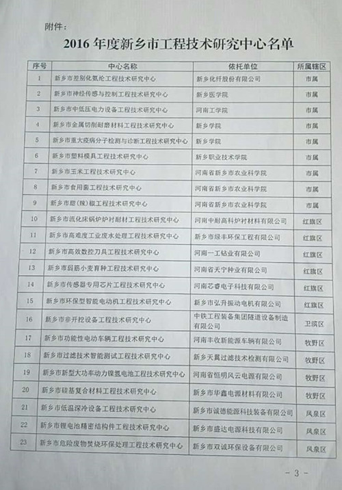 新鄉(xiāng)市科學(xué)技術(shù)局——關(guān)于認(rèn)定2016年度新鄉(xiāng)市工程技術(shù)研究中心的通知