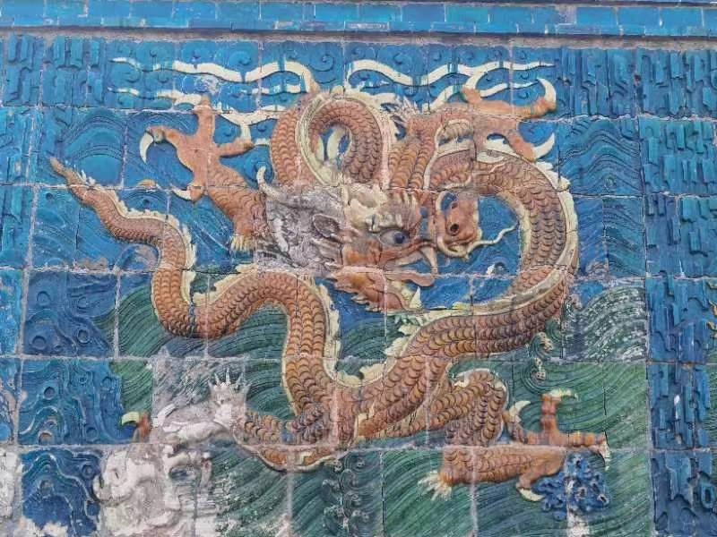 “明代龍壁上龍的造型雄壯、粗獷,到了清代,龍的造型相對要纖細、秀美一些?!睆埫嵴f,數百塊琉璃磚瓦能夠嚴絲合縫地拼接成整幅畫面,體現了中國古代工匠的高超技藝。