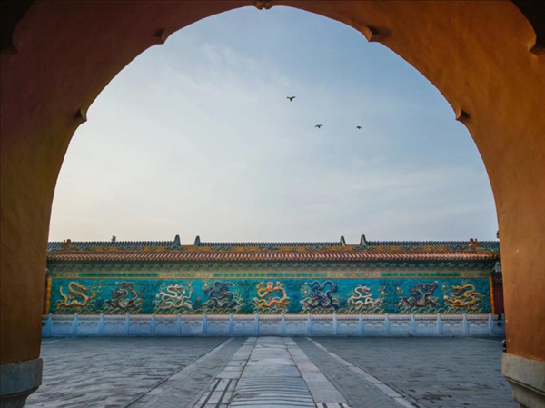 時光流逝,位于大同古城、北京北海公園、北京故宮的三座琉璃九龍壁依然完整精美。流光溢彩的壁身上,九條巨龍或俯身探海,或騰身上躍,或盤繞成團,張牙舞爪、活靈活現,彰顯著龍的神秘、神奇與威嚴。