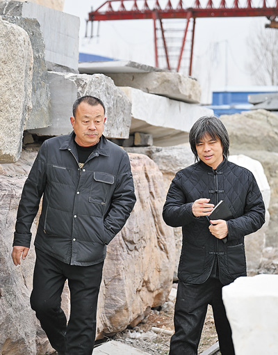 近日,全國政協(xié)委員、河北翰鼎雕塑集團首席技師高英坡(右)圍繞傳統(tǒng)工藝項目保護開展調(diào)研。